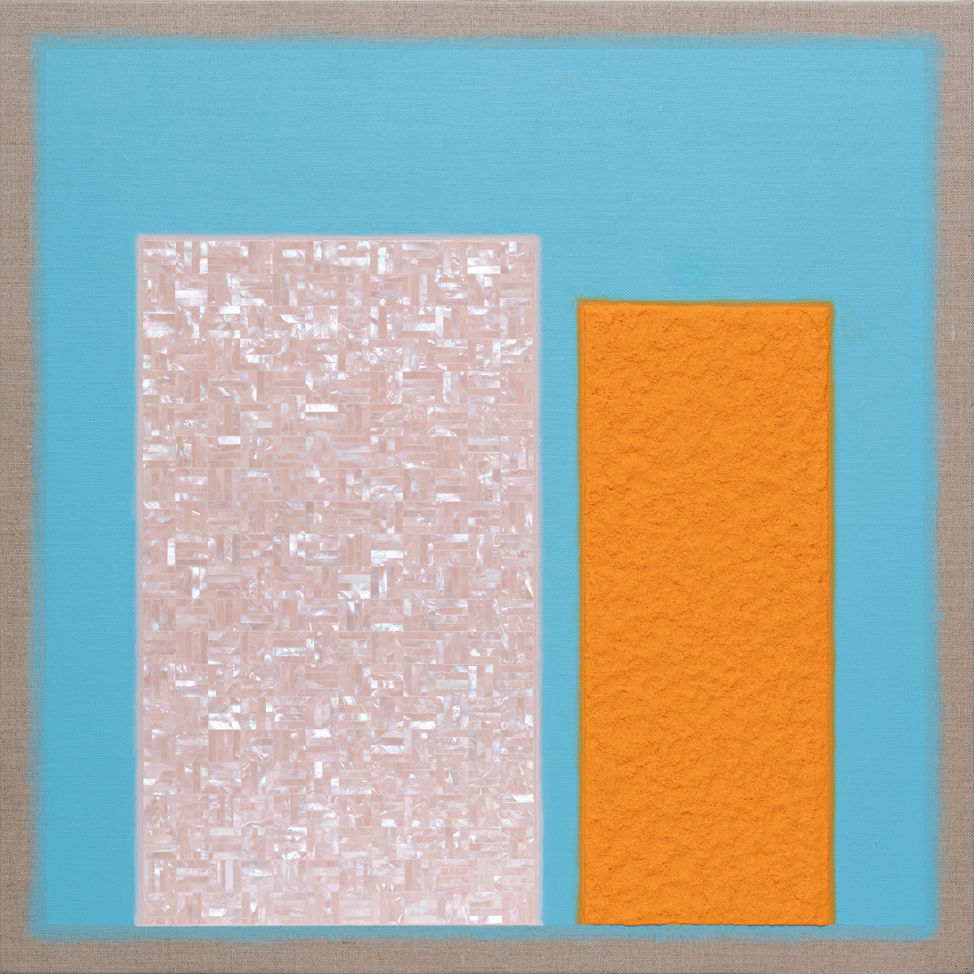 Mother-of-Pearl, Sand, and Acrylic Paint on Linen
