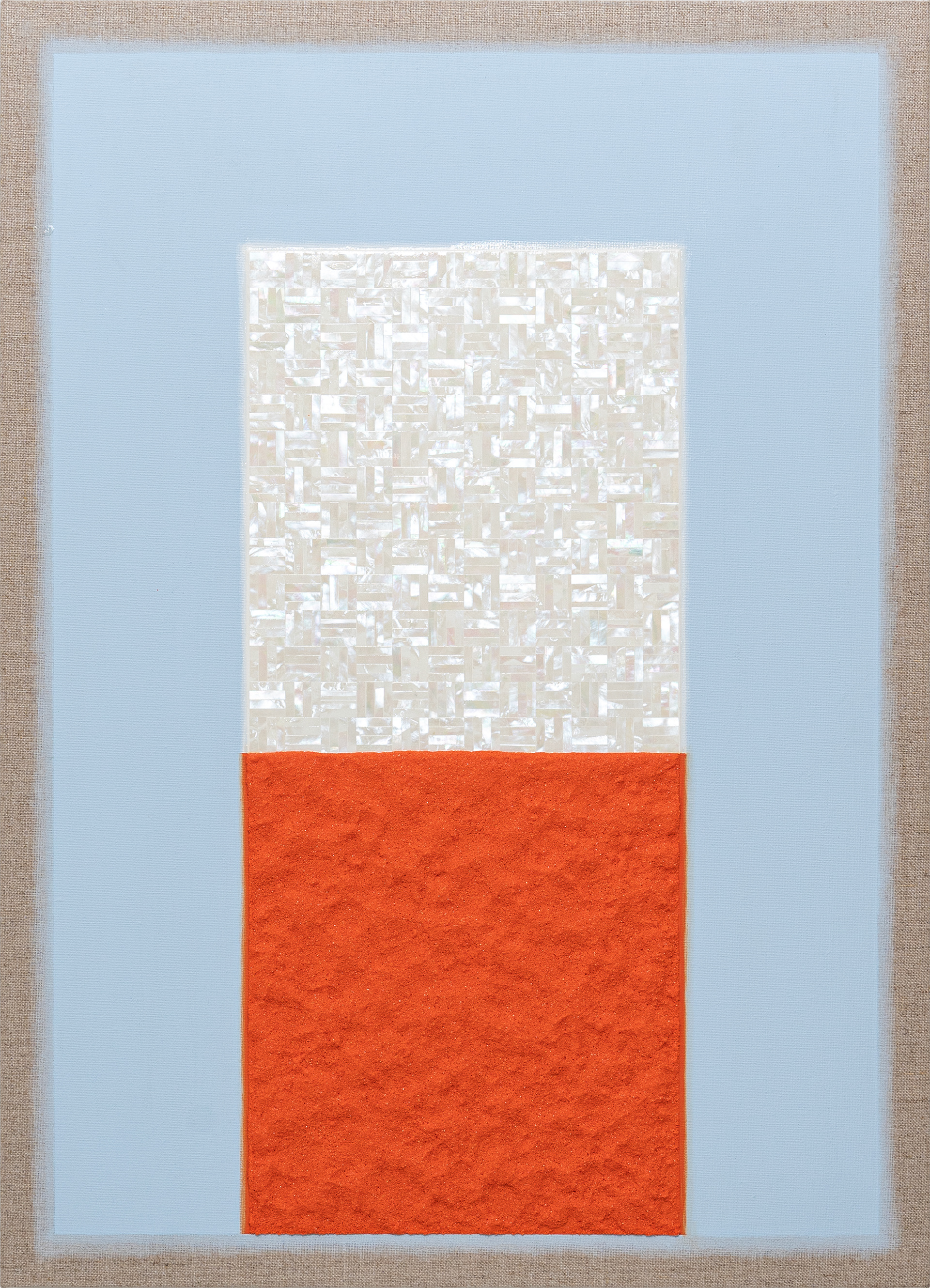 Mother-of-Pearl, Sand, and Acrylic Paint on Linen