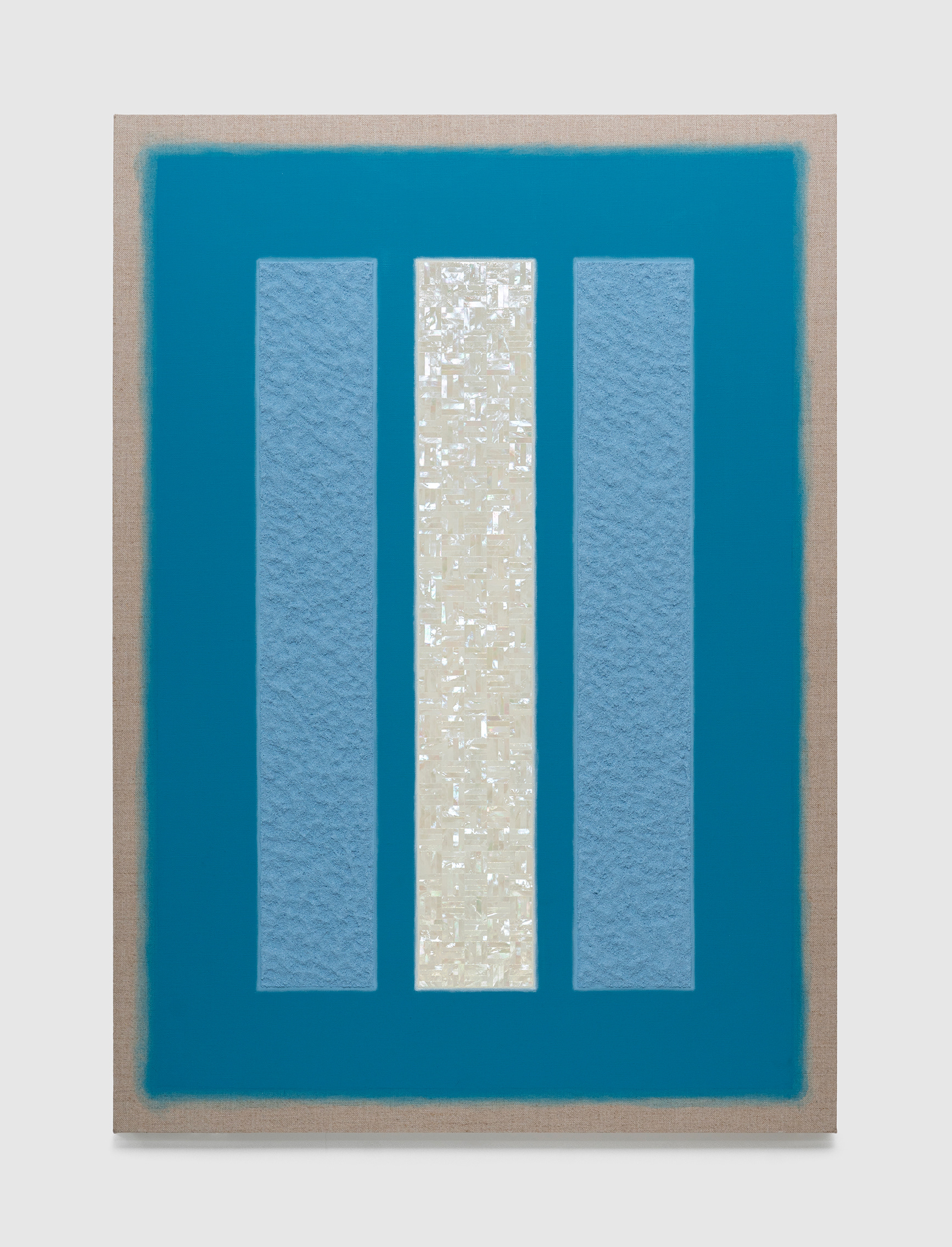 Mother-of-Pearl, Sand, and Acrylic Paint on Linen