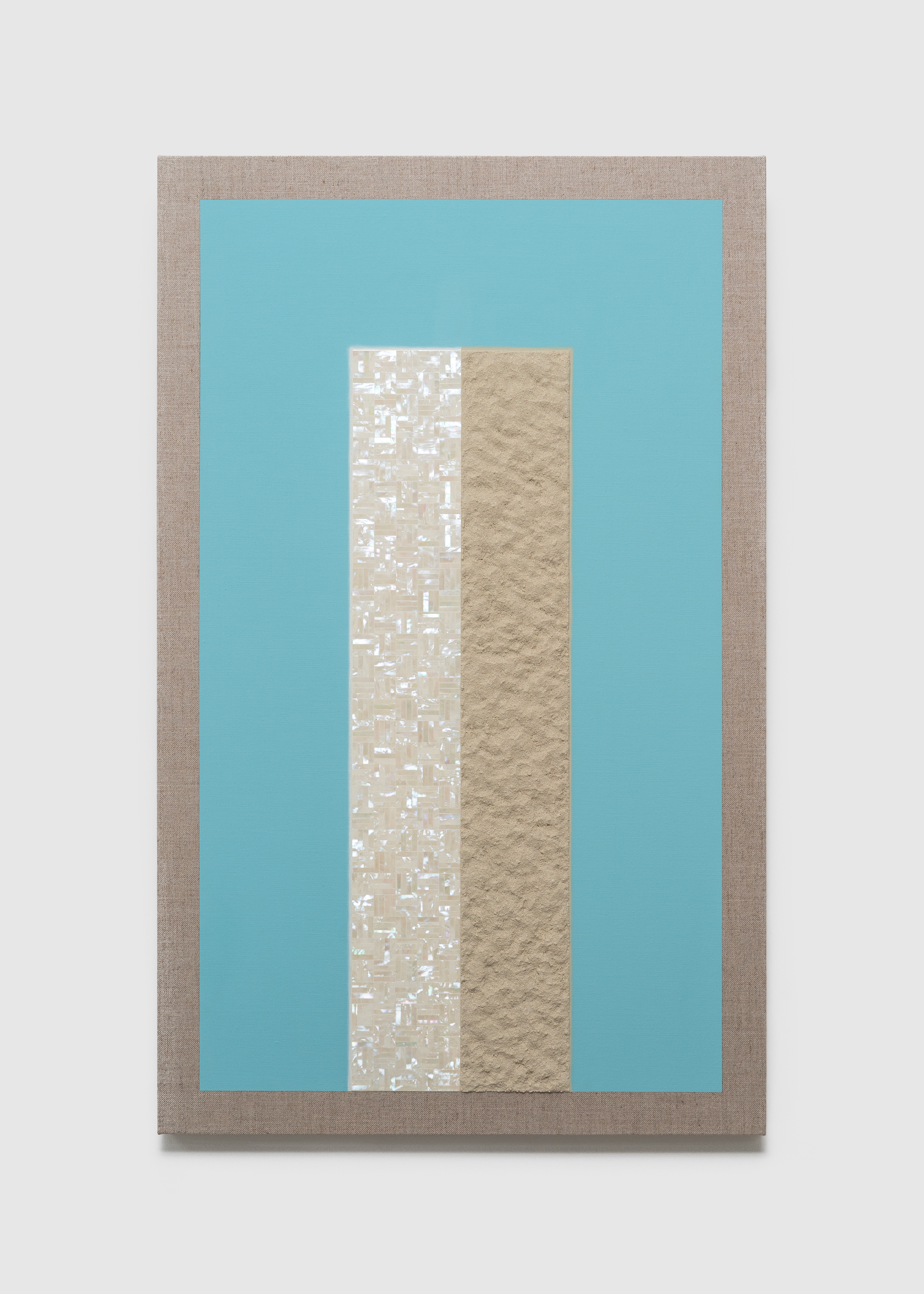 Mother-of-Pearl, Sand, and Acrylic Paint on Linen