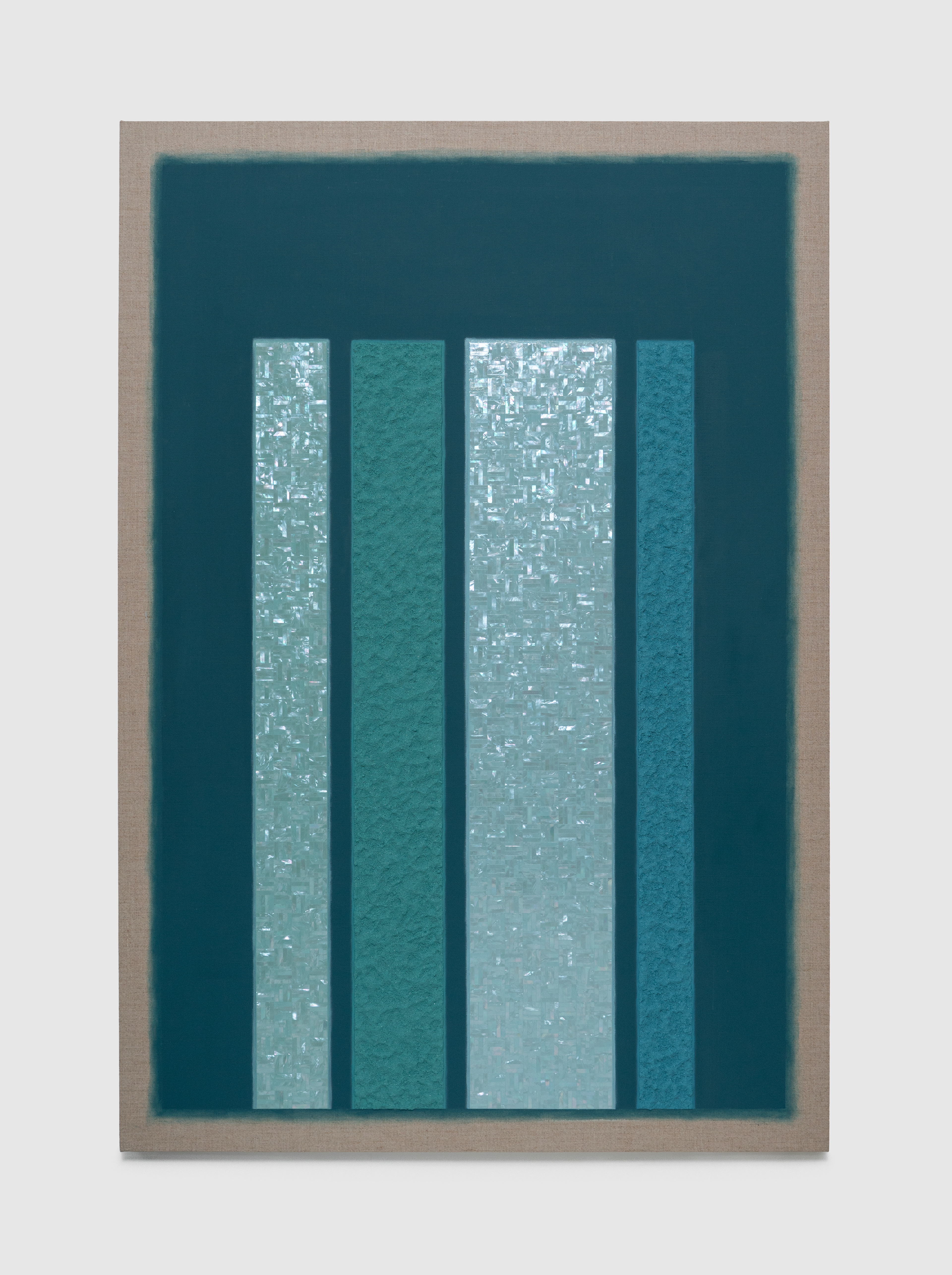 Mother-of-Pearl, Sand, and Acrylic Paint on Linen