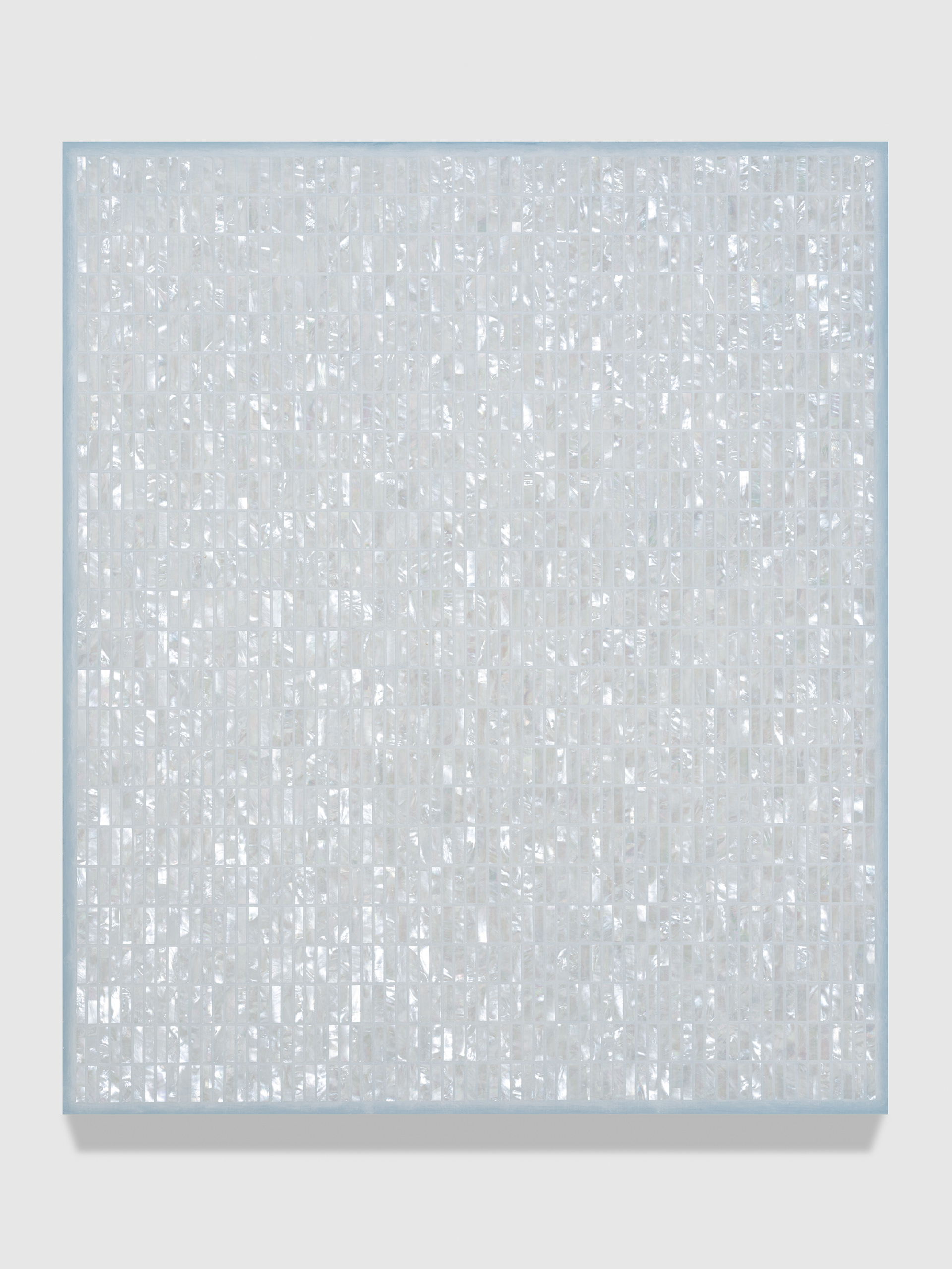Mother-of-Pearl and Acrylic Paint on Acrylic Panel